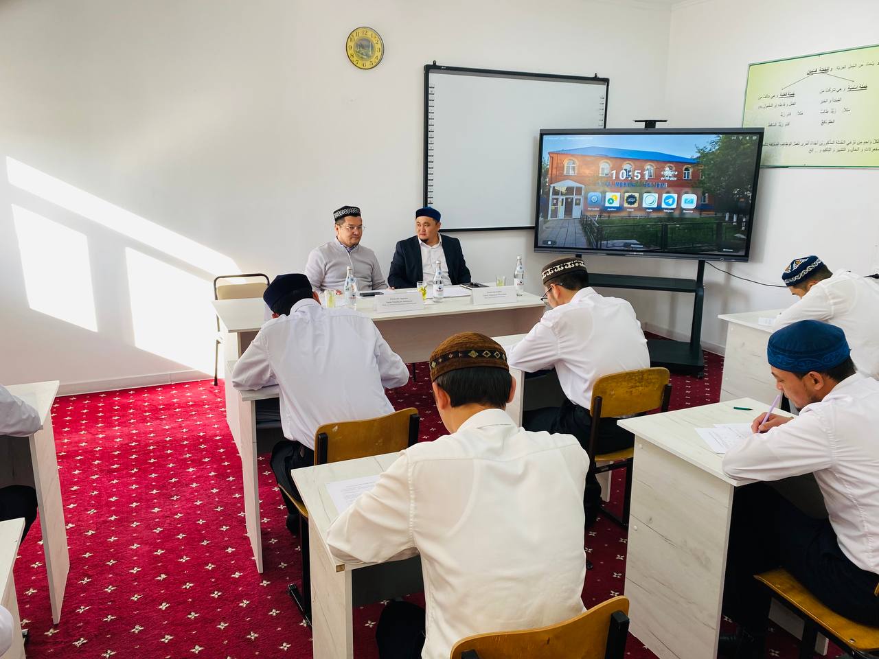 «Медресеміздің 2-ші курс шәкірттерінен бір жыл көлемінде алған білімдерін тексеру мақсатында бақылау емтиханы ұйымдастырылады.»