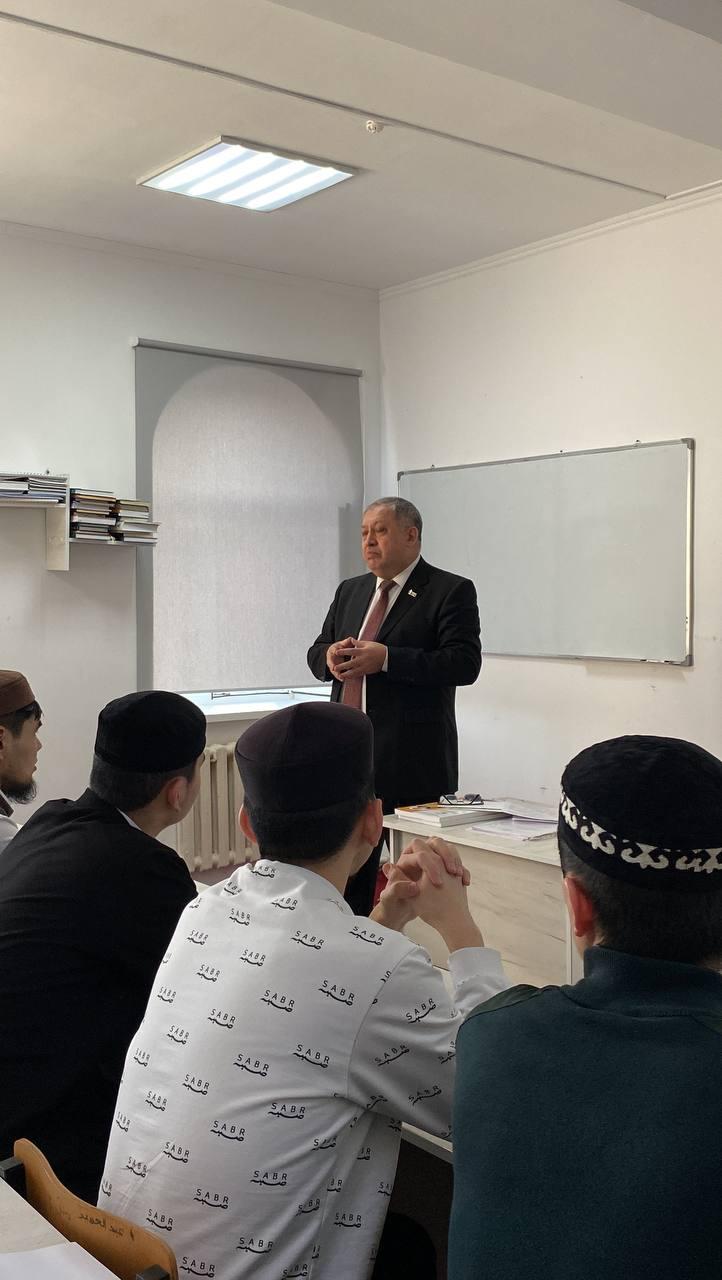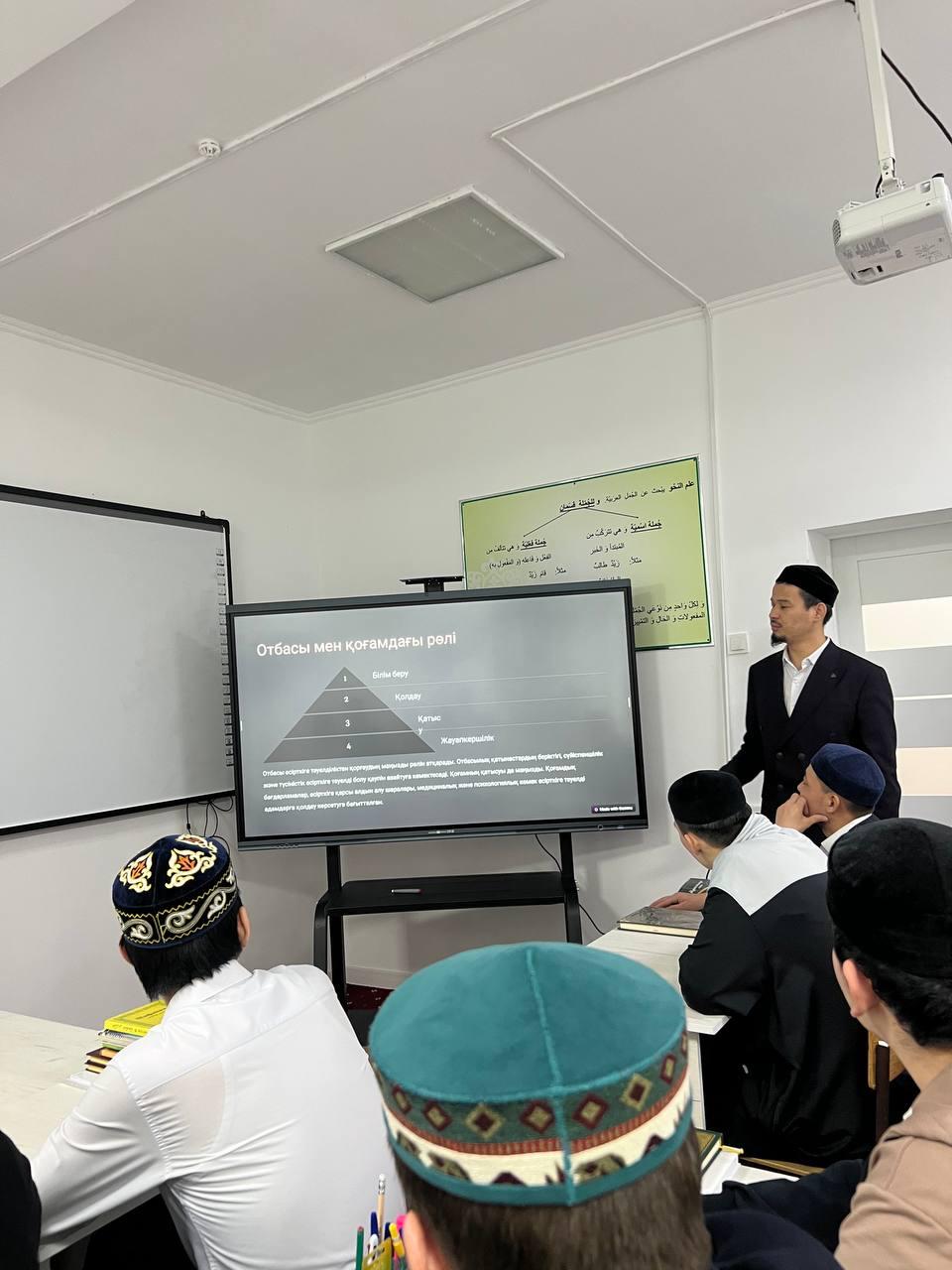 سم الله الرمن الرحيم Қанат Жакенов мәзхабтардын маңыздылығын тілге тиек етті. Шәкірттермен өткен шарада көкейкесті мәселелерді қозғап, шәкірттердін сұрақтарына жауап берді.