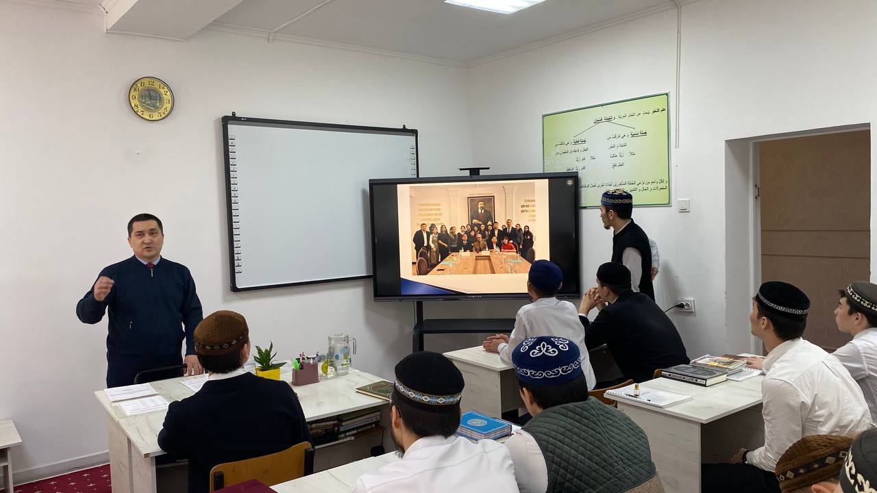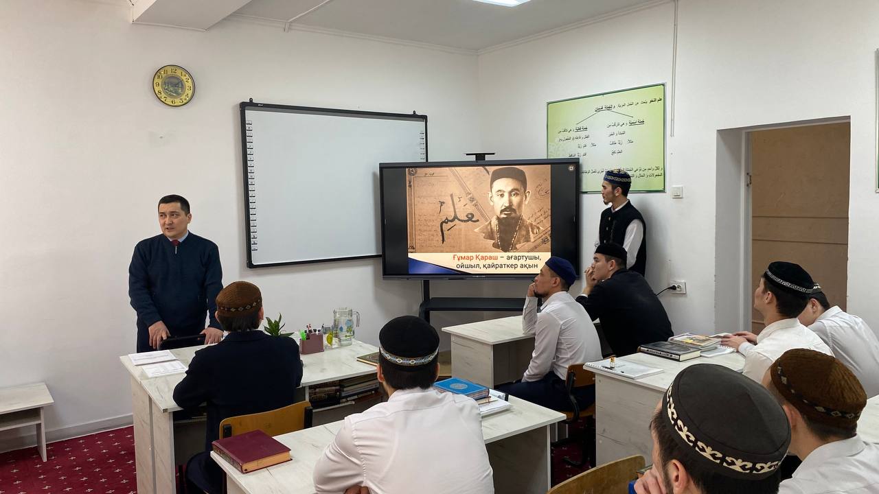 «Ғұмар Қараш – ағартушы, ойшыл, қайраткер ақын» атты тарихи-танымдық шара медресемізде шәкірттердің қатысуымен өткізілді. Шара барысында қазақтың көрнекті ағартушысы, ойшылы әрі қоғам қайраткері Ғұмар Қараштың өмірі мен шығармашылығы кеңінен таныстырылды. Кездесуде Хайдаров Есқайрат Ерболатұлы мазмұнды баяндама жасап, тұлғаның тарихи орны мен рухани мұрасы туралы терең мағлұмат берді. Шәкірттер тарапынан сұрақтар қойылып, өзара пікір алмасу ұйымдастырылды. Аталған шараның мақсаты – жас буынға ұлттық тарих пен рухани құндылықтарды насихаттау, отансүйгіштік рухты қалыптастыру және тарихи сананы нығайту.